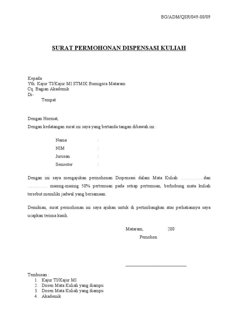 Kumpulan Contoh Surat Dispensasi Untuk Berbagai Kepentingan from failfaire.org