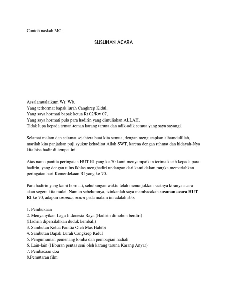 Download Contoh Mc Lomba Pictures. Berikut ini merupakan contoh laporan kegiatan ✅ seperti untuk lomba, sekolah, kantor dan kegiatan pramuka. Mulai dari acara peringatan, seminar, workshop, perpisahan, sosialisasi.