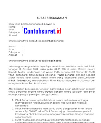 View Contoh Surat Perdamaian Kedua Belah Pihak Pictures. Ditambah lagi, penyebab kecelakaan mungkin akibat kesalahan keduanya, dan kerugian keduanya juga bisa ditoleransi, dengan biaya perdamaian tertentu dari. Perjanjian perdamaian adalah suatu perjanjian yang disepakati oleh kedua belah pihak dengan tujuan untuk mengakhiri suatu p.