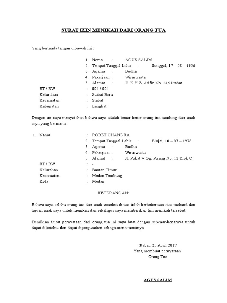 View Contoh Surat Persetujuan Orang Tua Untuk Menikah PNG